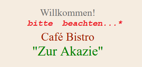 Café Bistro "Zur Akazie", hier sind wir für Sie da: Tel.: 06357 509954 | Kontakt | Impressum | Datenschutz